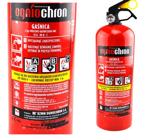 Gaśnica proszkowa ABC 2 kg z Wieszakiem Samochody Ciężarowe Dostawcze OGNIOCHRON