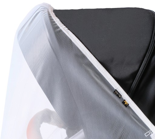 Moskitiera jest wykonana z delikatnego, przewiewnego materiału - pozwala na swobodne oddychanie dziecka i kontakt wzrokowy z dzieckiem.