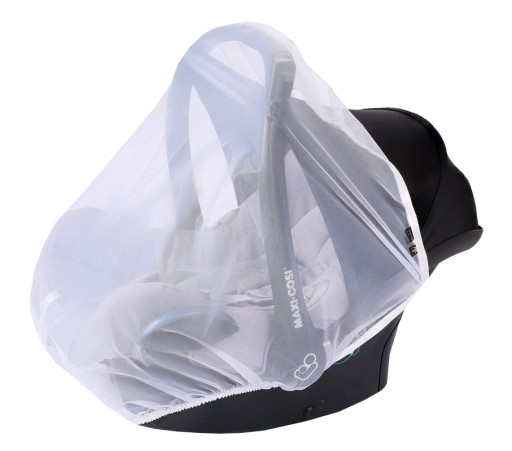 Moskitiera jest obszyta lamówką ze ściągaczem, dlatego dobrze dopasuje się do większości wózków oraz fotelików samochodowych.