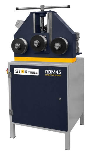 Najbardziej wyjątkową cechą RBM45/2 jest to, że posiada układ ręczny docisku górnej rolki oraz napęd dolnych rolek przez motoreduktor. Dzięki czemu zakres roboczy giętarki umożliwia gięcie rur o wymiarach 60x2,0 mm.