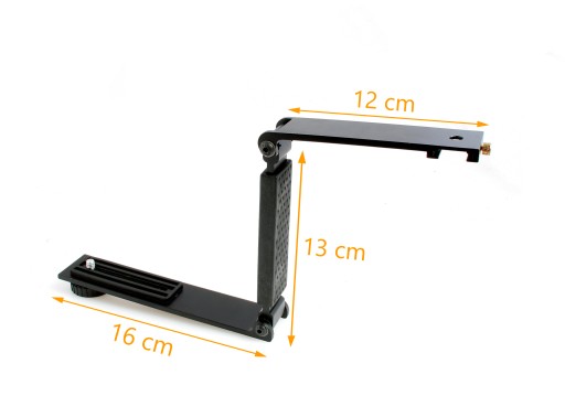 Uchwyt typu bracket pozwala zamontować lampę błyskową w zwiększonej odległości od osi aparatu, niż pozwalają na to sanki.
