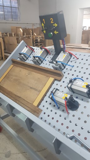 Witam mam do zaoferowanie prasę stolarską pneumatyczną montażową . Prasa składa się z 5 szt siłowników fi 63 / lub fi 80/ skok 100 znanego polskiego producenta PREMA . Stół ma wymiary 1680mm x 910 mm ,grubość blachy montażowej 8 mm, .otwory montażowe rozmieszczone są co 45 mm,maksymalna wielkość robocza 1200mm x 550, mm ,wysokość ścianki oporowej i płytek na siłownikach 8 cm, sterowniki manualne 2szt plus przycisk BHP, ,cena prasy w powyższej konfiguracji ale mogę wykonać prasę o innych wymiarach i parametrach według potrzeb klienta,czas oczekiwania od 3 do 5 tygodni, Certyfikat CE