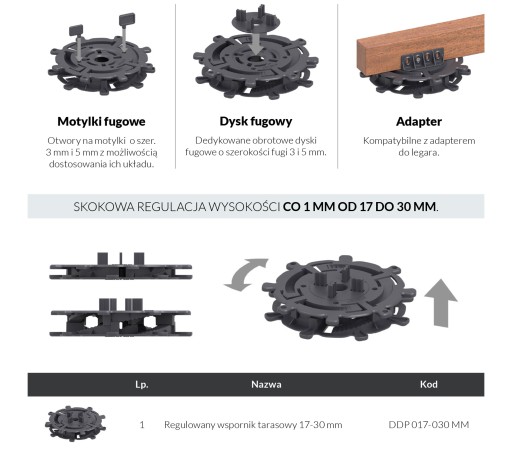 Wspornik ze skokową regulacją wysokości wraz z dyskiem fugowym o grubości fugi 3mm