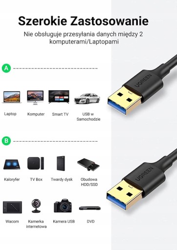 Kabel UGREEN USB-A 3.0 do USB-A 3.0 to wysoka jakość, wytrzymałość i estetyka.