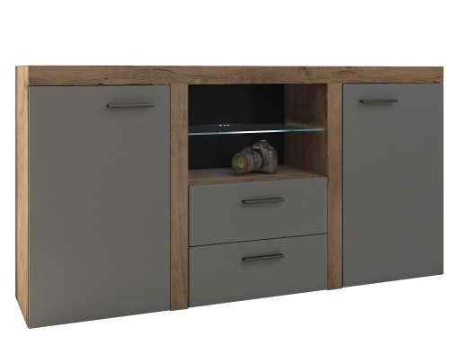 Przedstawiona komoda to połączenie nowoczesnego stylu oraz funkcjonalności. Wnętrze zostało podzielone na półki oraz szuflady, które pomogą w organizacji miejsca.