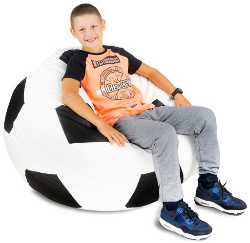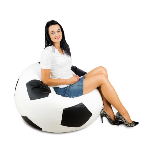 Przedmiotem aukcji jest piłka pufa o pojemności 450L. Wersja kolorystyczna na tej aukcji to piłka biało-czarna, Wymiary pufy to 100cm szerokości, 100cm głębokości oraz 60cm wysokości. Należy pamiętać, że pufa jest meblem bezszkieletowym, dlatego jej wymiary mogą się zmieniać w zależności od wagi osoby użytkującej oraz ułożenia pufy. Pufa jest standardowo wypełniona mieszanką sprężystych materiałów do produkcji mebli, które zapewniają trwałość i komfort użytkowania lub regranulatem styropianowym - do wyboru. Materiały z których została wykonana są bezpieczne dla ludzi i środowiska, ekologiczna skóra posiada atest PZH.