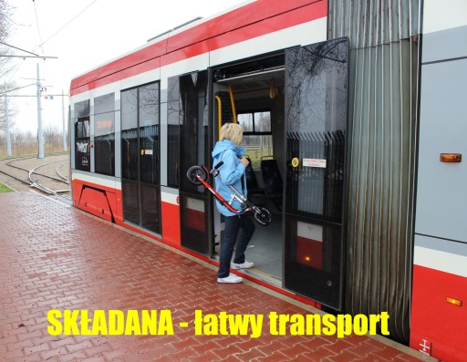 Aluminiowa składana konstrukcja + pasek do noszenia na ramieniu - możesz ją złożyć i zabrać np. do tramwaju czy pociągu