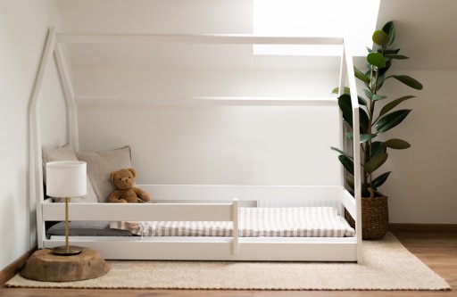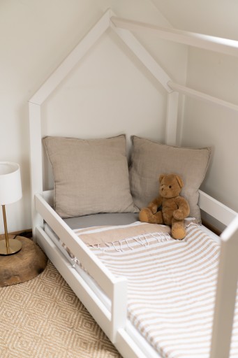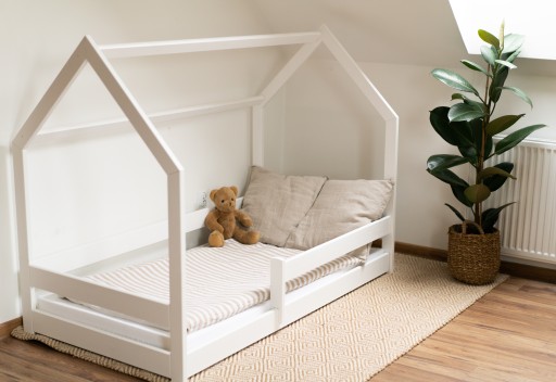 Nasza firma oferuje łóżka typu domek z naturalnego drewna sosnowego w kolorze białym z barierkami BEZ MATERACA.
