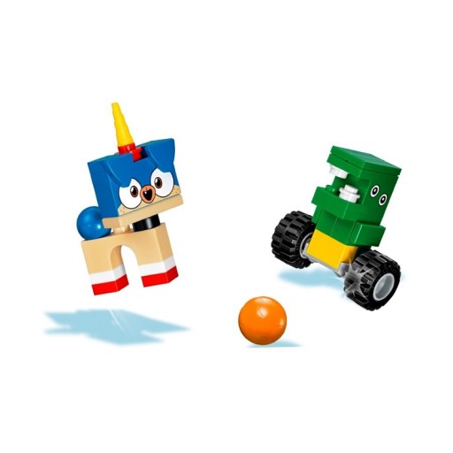Przemierzaj Kiciorożkowo z ogromną prędkością w zestawie LEGO® Unikitty™! 41452 Rowerek Księcia Piesia Rożka™! Pomóż Dinokolesiowi i Kopniakowi dogonić Księcia Piesia Rożka i podziel się ze wszystkimi szczęściem, wystrzeliwując błyszczącą materię z miotaczy na rowerku. Zatrzymaj się na chwilę i zjedz pyszną przekąskę — Dinokoleś ma ze sobą całą skrzynię pizzy i lodów oraz piłkę do zabawy. Potem wdrap się z powrotem na trójkołowy rowerek i ruszaj na poszukiwanie kolejnych przygód!