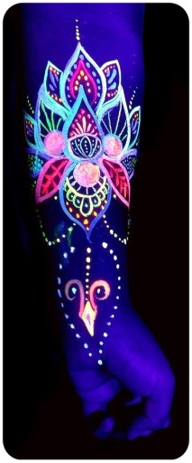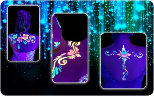 Z kreatywnym podejściem , za pomocą prostych szablonów można zrobić naprawdę niesamowicie piękne cudownie błyszczące obrazki na ciele.