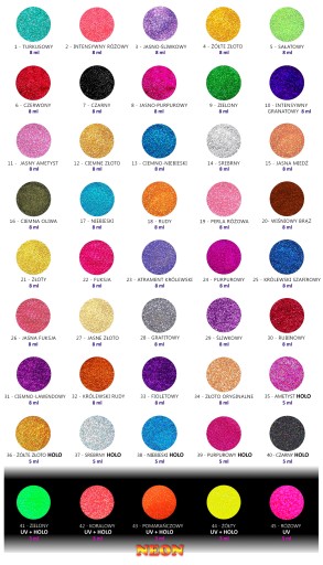 5 - KOLORÓW NEONOWYСH ( UV-EFEKT , 4 z podanych kolorów również mają dodatkowo efekt holograficzny )