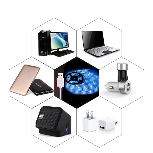 Taśma zasilana jest przez wtyk USB, natomiast sterowanie odbywa się za pomocą bezprzewodowego pilota. Dzięki diodom RGB można zmieniać barwę i natężenie światła oraz efekty i ich szybkość. Posiadają wodoodporność IP20 i mocną taśmę samoprzylepną do jej zamocowania.