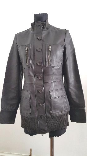 Kurtka skórzana SNAPSHOT, ciemnobrązowa, podszewka w kolorze kurtki. Matowa, bardzo miękka. Zapinana na suwak i guziki.