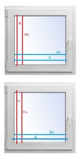 Hs - wysokość szyby (łącznie z uszczelką)