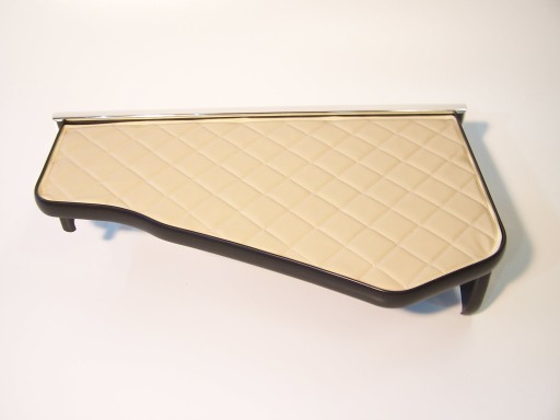 przedmiotem aukcji jest półka środkowa do NAJNOWSZEJ Scanii "S" oraz do nowego modelu "R" od 2016 r. wyłożona dywanikiem z eko-skóry w kolorze beżowym, z frezowanymi stopkami i niklowanym napisem.