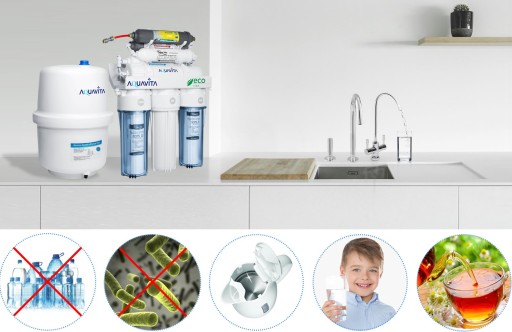 - Uzyskasz krystalicznie czystą wodę, pozbawioną kamienia, metali ciężkich, chloru, pestycydów, mikroorganizmów