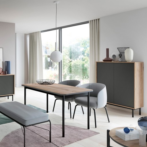 Szlachetny kolor drewna, nawiązujący do natury, podkreślony kontrastowym surowym grafitem sprawi, że Twój dom nabierze niepowtarzalnego i oryginalnego wyglądu. System otwierania frontów PUSH TO OPEN czy też staranie wykonane nogi drewniane to tylko niektóre zalety kolekcji FLOW. Meble z tej kolekcji dają nam możliwość komponowania własnego zestawu, możliwość kupna poszczególnych brył osobno. Poniżej dostępne pozostałe elementy tego modelu. Zapraszamy do zakupów!