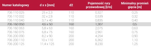 - Dostępny zakres średnic rury przewodowej 20 - 125 mm stanowi kompletny system o wydajności dostosowanej do potrzeb każdego odbiorcy