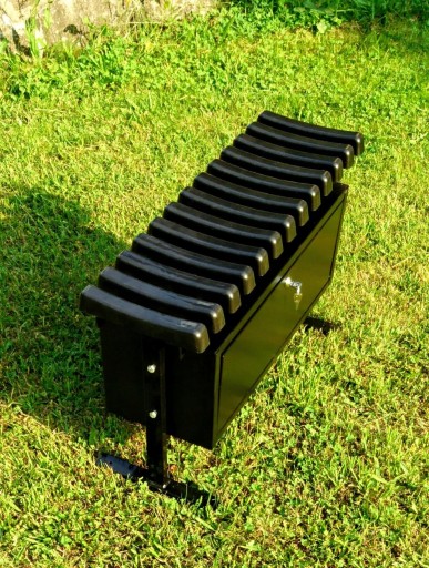 Tego rodzaju ławeczki cmentarne wykonujemy ze stalowych profili zamkniętych 40x20, zakończonych zaślepką z tworzywa sztucznego. Ławka posiada wzmocnienie poprzeczne 30x20 przechodzące tuż pod skrzynką. Rama siedziska została wykonana z kątownika 25*25.