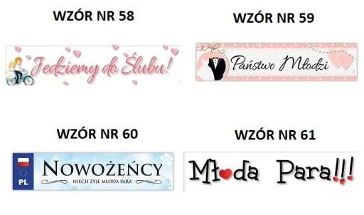 Ślubne tablice na samochód Pary Młodej - 2 sztuki