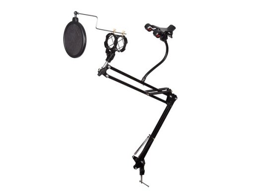 Statyw mikrofonowy doblatowy z uchwytem na smartfon