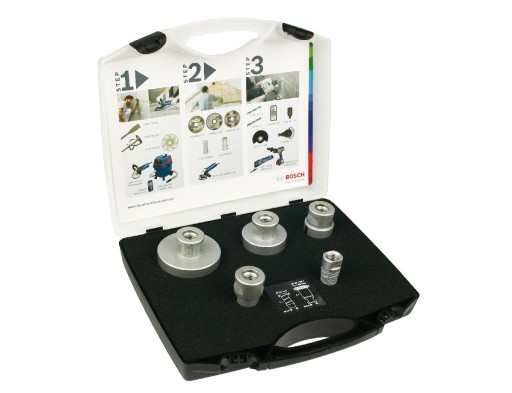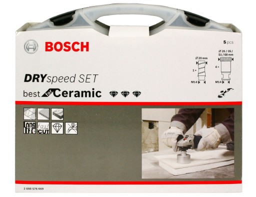 Zestaw 4 koron diamentowych i 1 frezu diamentowego do płytek seria DRY Speed for Ceramic firmy BOSCH składa się z: