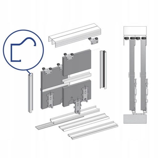 System okuć do drzwi przesuwnych marki Bimak - zestaw do budowy 4 drzwi, do szafy lub zabudowy o szerokości do 4,0 m i wysokości do 2.69 m