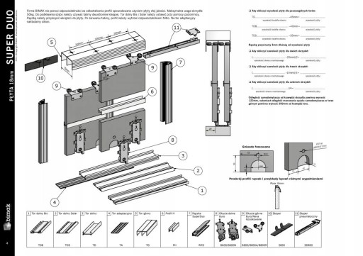 System okuć do drzwi przesuwnych marki Bimak - zestaw do budowy 2 drzwi, do szafy lub zabudowy o szerokości do 1,0 m i wysokości do 2.69 m