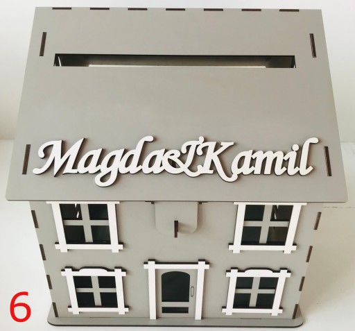 W wiadomości do sprzedającego napisz Numer domku, numer czcionki oraz napis widniejący na daszku np.( numer domku 4, numer czcionki 1, napis Mateusz&Julia)