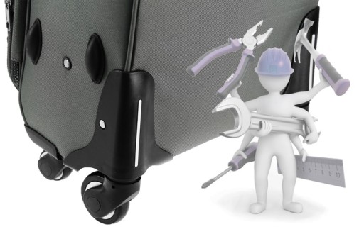 Aby zamontować kółko wystarczy jedynie kilka nitów lub płaskich śrubek. Całość obudowy wraz z zainstalowanym kółkiem przytwierdzamy do korpusu naszej walizki.