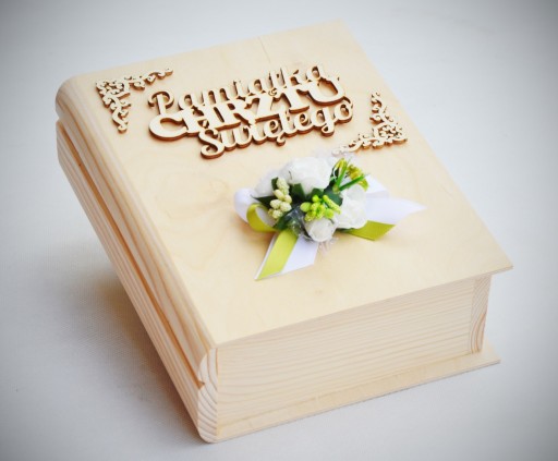 - elegancką, drewnianą szkatułkę w kształcie książki z indywidualną, ręcznie wykonaną dekoracją; wymiar szkatułki 24x19x10cm