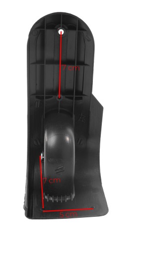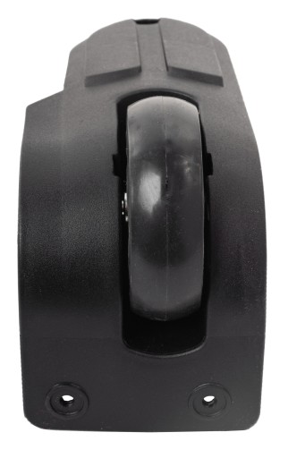 Uniwersalne kółko, gotowe do samodzielnego montażu. Na całość składa się duże masywne kółko, które pokryte jest grubą warstwą kauczuku. Kółko schowane jest w dużym solidnym korpusie, a samo natomiast osadzone jest w łożysku. Model 1003 stanowi solidny, cichy oraz sprawdzony układ jezdny do każdej walizki. Aby zamontować kółko wystarczy jedynie kilka nitów lub płaskich śrubek. Całość obudowy wraz z zainstalowanym kółkiem przytwierdzamy do korpusu naszej walizki.(do kółka nie dodajemy śrub montażowych)