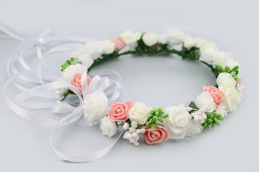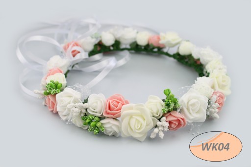 Wianki komunijne, wykonane ręcznie, w pięknych, subtelnych pastelowych odcieniach. Wykonane z piankowych róż doskonale imitujących kwiaty żywe, z dodatkiem perełek, pięknie się prezentują.