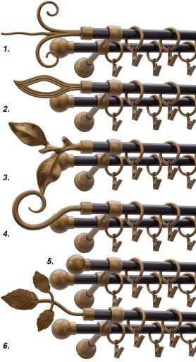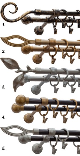 Poniżej kolorystyka karniszy oraz modele zakończeń do wyboru