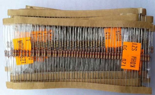 Zestaw 20 najpopularniejszych rezystorów węglowych o mocy 0.25W i 5% tolerancji, używanych przez każdego elektronika.