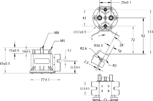 - Zamontuj cewkę używając śrub z podkładkami 1/4".