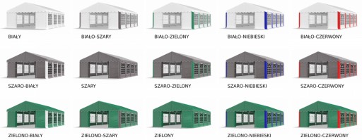 biały, biało-szary, biało-zielony, biało-niebieski, biało-czerwony, szaro-biały, szary, szaro-zielony, szaro-niebieski, szaro-czerwony, zielono-biały, zielono-szary, zielony, zielono-niebieski, zielono-czerwony