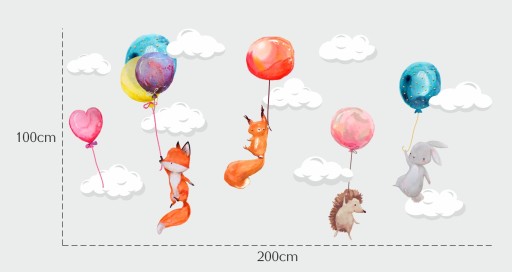 Naklejki na ścianę: zwierzęta z balonami i chmurki