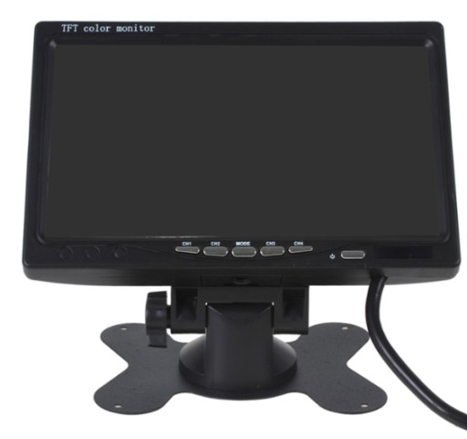 Uniwersalny monitor LCD ma przekątna 7" Ekran można zamontować w dowolnym miejscu, w kieszeni lub na regulowanej podstawce. Monitor , poza obsługą kamery cofania może także służyć do oglądania materiałów wideo lub zdjęć. W przypadku podpięcia monitora do zasilania światła cofania, w momencie włączenia biegu wstecznego ekran uruchamia się automatycznie wyświetlając obraz z kamery podłączonej do monitora*