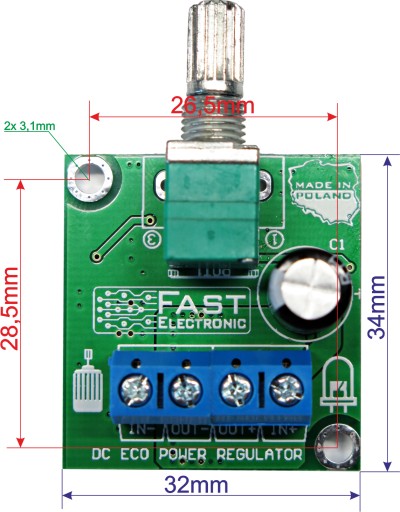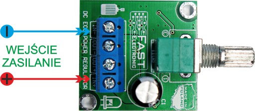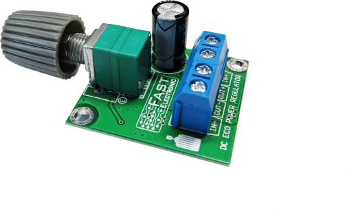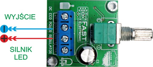 - po skręceniu do minimum zapewnia całkowite zatrzymanie silnika lub wygaszenie LED (wyłączenie obciążenia po przekręceniu gałki potencjometru maksymalnie w lewo-wbudowany włącznik)