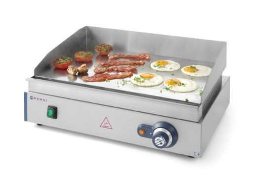 Elektryczna płyta grillowa Hendi umożliwi przygotowanie mięs, ryb, warzyw, jajek, placków oraz wielu innych potraw. Sprawdzi się w niewielkich lokalach gastronomicznych, barach szybkiej obsługi, bufetach i śniadaniowniach. Urządzenie posiada certyfikat CE i spełnia wymagania Sanepidu.