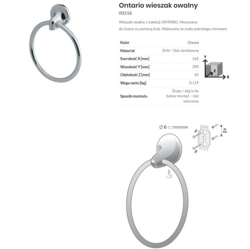 ONTARIO BISK ОВАЛЬНАЯ ХРОМНАЯ ВЕШАЛКА 00218