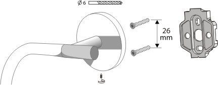 Mocowany do ściany za pomocą śrub lub kleju BISK FEST.
