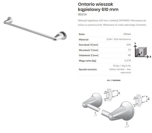 ONTARIO BISK ВЕСЕЛКА ДЛЯ ВАННЫ 610 мм ХРОМ 00214