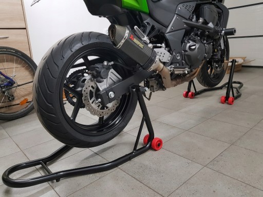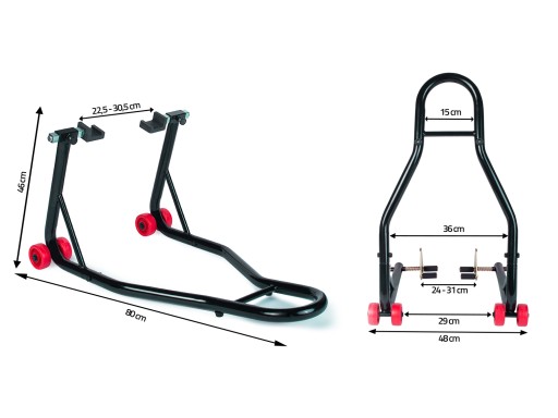 Podnośnik wykonany został z materiałów najwyższej jakości. Do produkcji wykorzystano stalową rurę o średnicy 32 mm malowaną proszkowo. Możliwość regulacji pod indywidualną szerokość motocykla.Wszystkie części są zabezpieczone przed korozją poprzez malowanie proszkowe bądź ocynkowanie. Kółka wykonane zostały z wysokiej jakości kompozytu.
