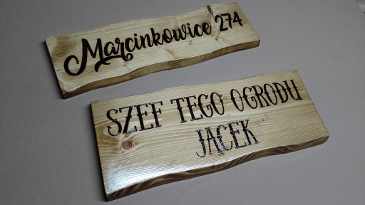 Witam. Nazywam się Piotr jestem rzemieślnikiem artystą który z pasją ręcznie wykonuję tablice i szyldy na litym drewnie. Tablice wykonane są na drewnie świerkowym po suszarni obrobione idealnie gładko a na nich wykonany napis metodą pirografii, wypalania na drewnie.
