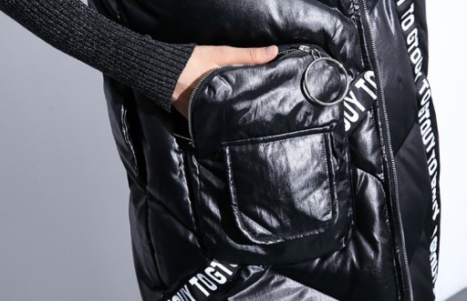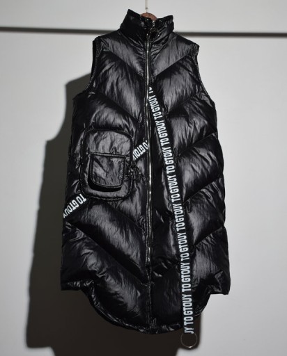 Теплый стеганый пуховый жилет с надписями 38 М