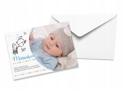 Pamiętaj aby przesłać nam zdjęcie oraz imię, a my bezpłatnie umieścimy je na podziękowaniach. Dzięki temu otrzymasz podziękowania wraz z kopertami gotowe do wręczenia.