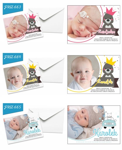 - W wiadomości do sprzedającego lub w wiadomości e-mail prześlij nam imię potrzebne do przygotowania podziękowania podziękowań. Napisz nam koniecznie również jaki wybierasz wzór. Ponadto poprzez e-mail prześlij nam zdjęcie małego bohatera. Zanim przejdziemy do produkcji prześlemy Ci wizualizację do akceptacji. Jeżeli jednak zależy Ci na czasie i nie chcesz oglądać wcześniej projektu to koniecznie nam o tym napisz, od razu zajmiemy się produkcją.