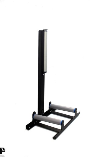 Stojak wykonany jest z wysokiej jakości, wytrzymałej 4 mm czarnej stali, precyzyjnie wyciętej i wygiętej, finalnie pokrytej proszkowym wykończeniem, zarówno wewnątrz jak i zewnątrz, aby zapewnić dodatkową warstwę ochronną przed utlenianiem. Dolne rolki o długości 300 mm oraz górna o długości 400 mm (łączna długość pałąka 900 mm) dopasują się do felg w rozmiarze od 14” do 22”. Wysokiej jakości gumowe nóżki utrzymają stojak w jednej pozycji podczas całej pracy. Dzięki specjalnym, tylnym zagięciom pałąk jest bardzo stabilny nawet przy masywnych kołach.